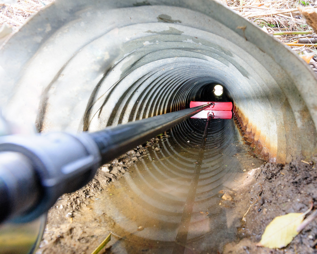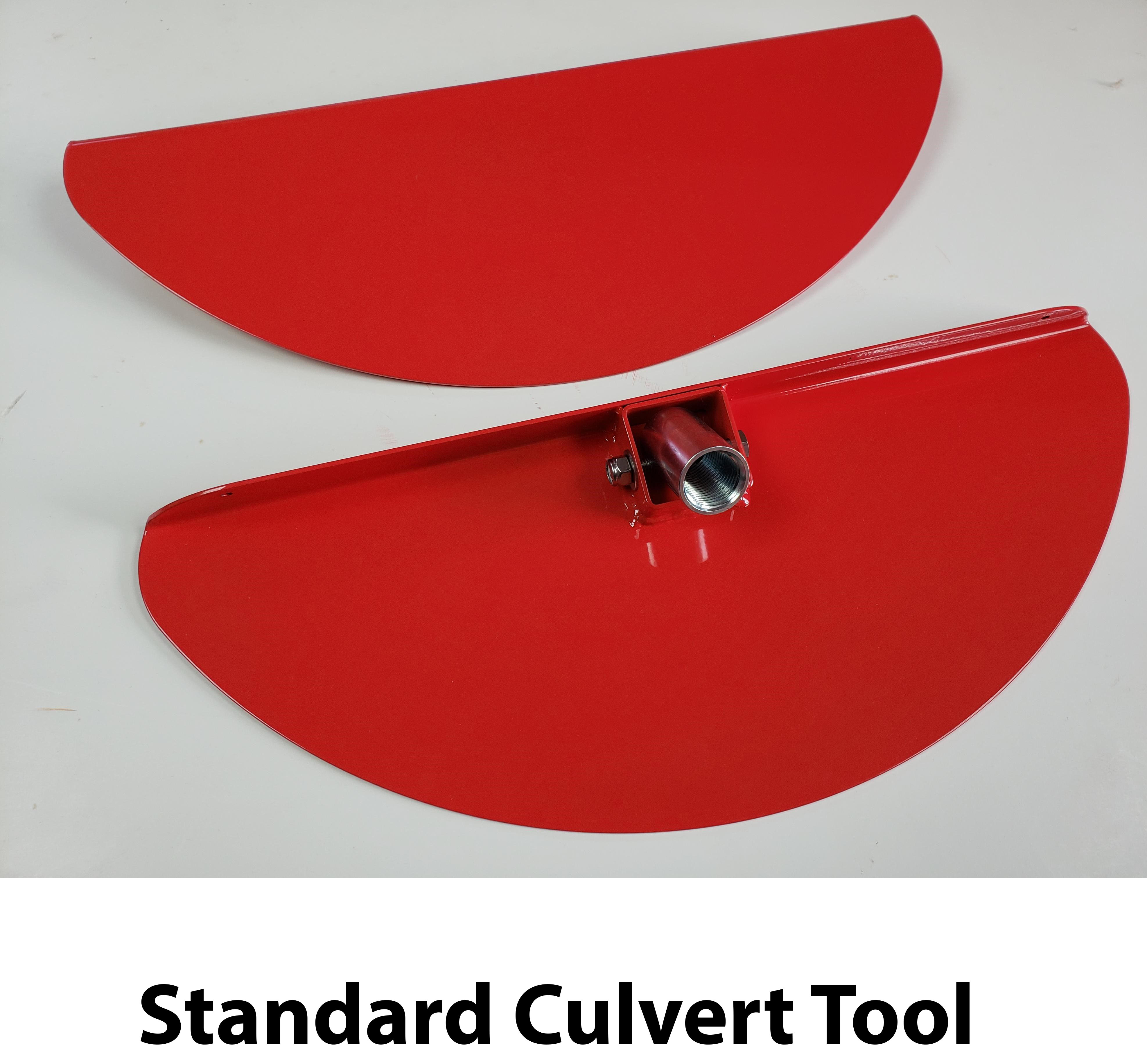 • Clean Your Own Culvert Pipe and Save 100's of $$$ We have developed a culvert cleaning tool which is very effective and easy to use, not to mention a very reasonable price. For contractors, Towns, and for residential jobs. This tool was developed out of my personal need to clean my culvert pipe at home. I have a 14 inch culvert pipe which is over 50 feet long. For several years we had problems when we had heavy rains our culvert pipe would get clogged with dirt, stones, and debris. I would shovel the ends out the best I could, but you can only get in so far with a shovel. Finally the pipe got so bad water would dam up behind it up to 4 feet high. So, we called a local professional pipe cleaning company to get a quote for cleaning our culvert and to our amazement it would cost $500-$600 to get the job done. Then I started to work on a design of a hand tool that I could use to clean the culvert myself. This tool worked so well on my culvert I decided to make them available for everyone. The tool is a hoe like device with a pivoting joint which can be pushed in the culvert on top of the debris and is then activated by pulling the tool back out. The pulling action causes the tool to dive down into the debris and then you simply pull it out. It is made totally out of steel so it is very durable. The handle of the unit is 1/2" threaded steel pipe ( which is not included with the tool because it is not economical for us to send you pipe through the mail) you can pick up a length of 1/2 pipe at your local plumbing supply or home center. For a extra long culvert like mine I needed (3) 10 foot lengths of pipe connected together with pipe couplings, but for most residential jobs one length of pipe is more than enough. You only need a long enough handle to get a little more than half way through the culvert, then you clean half the culvert from each end, so for a 12 foot long culvert an 8 foot long piece of pipe would be more than enough. For a longer culvert simply add more pieces of pipe. We stock sizes for standard 8", 10", 12",14" and 18" culverts, the tools are made smaller than the I.D. of the culvert to allow for clearance.(the 14" tool is for 14" diameter culverts and the 12" tool is for 12" diameter culvert pipes),You can use a smaller size tool to clean out larger culverts, it just takes a few more passes. The price starts at $79 NOW on SALE 25% OFF starting at only $59.25